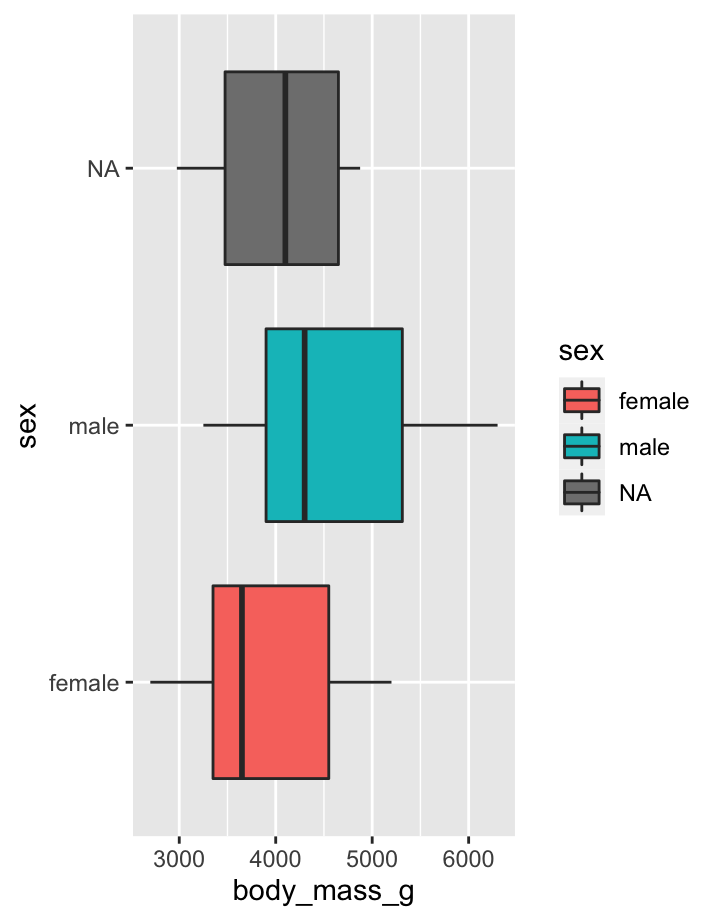 penguins %>% ggplot(aes(x = body_mass_g, y = sex, fill = sex)) +