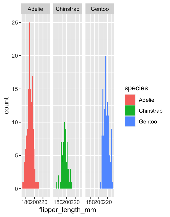 penguins %>% ggplot(aes(x = flipper_length_mm, fill = species)) +